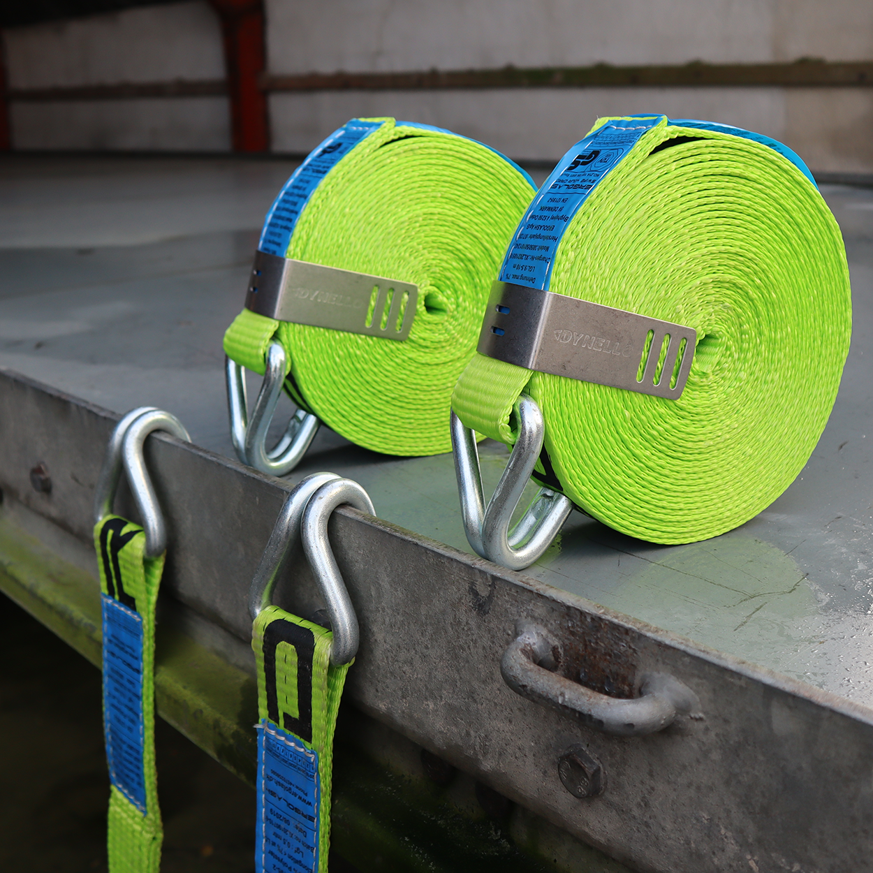 Morsetto per cinghia ultra robusto per cinghie di ancoraggio da 5t (larghezza 50 mm) in acciaio inossidabile. Ottieni uno stoccaggio ordinato e salvaspazio delle tue cinghie con il clip DYNELLO®. Il clip per cinghia si fissa facilmente alla cinghia arrotolata, impedendone lo svolgimento.